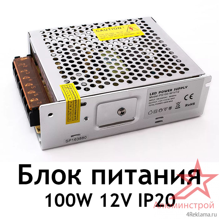 Блок питания открытого типа негерметичный IP20 для светодиодных лент и модулей. Блок представляет собой преобразователь напряжения с 220V на 12V, с допустимой мощностью нагрузки 100 Ватт. Электронная система имеет защиту от скачков напряжения и перегрузки. Корпус открытого блока питания выполнен из металла.